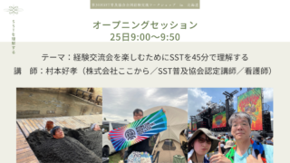 広報 オープニングセッションの内容が決まりました テーマ:経験交流会を楽しむためにSSTを45分で理解する講 師:村本好孝(株式会社ここから/SST普及協会認定講師/看護... 2026.02.18 広報