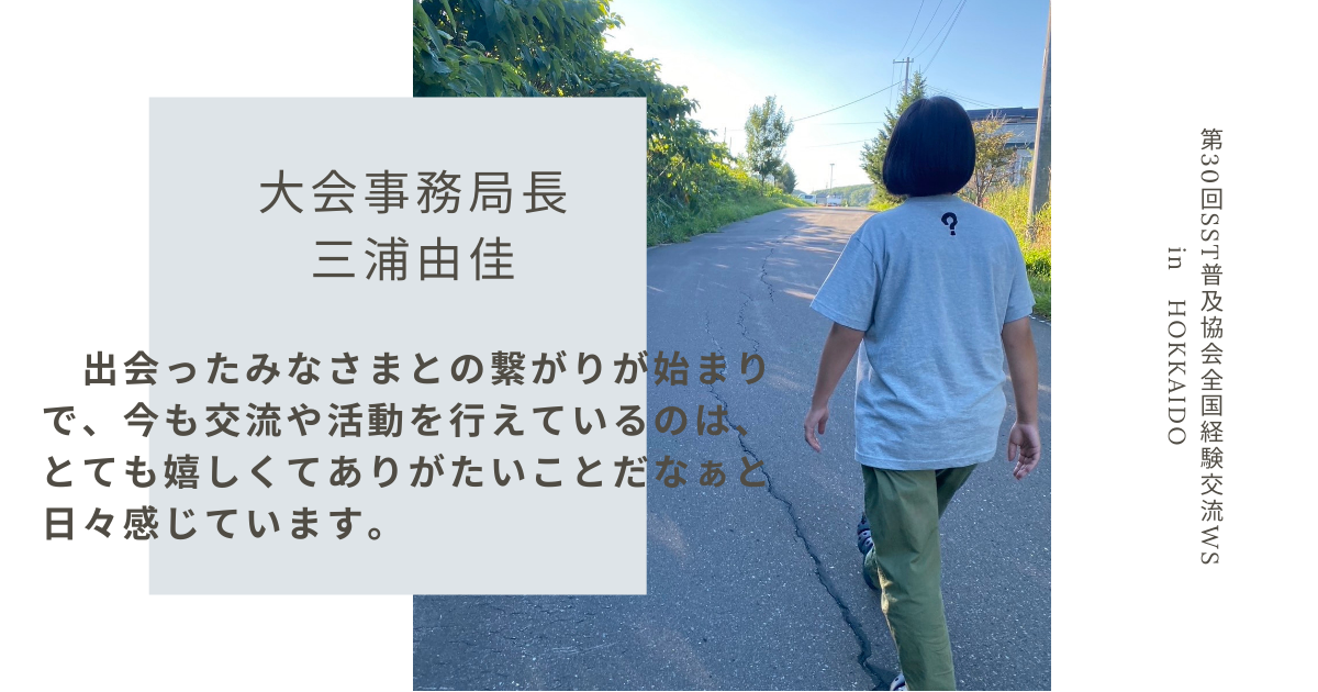 SSTは大学時代の講義で初めて触れ、その後大学で開催している障害を持つ方向けへの生涯学習のイベントで、同期と一緒に講義にチャレンジする機会がありました。その際、タイミングよく札幌を訪れていた前田ケイ先生との食事会に緊張しながら同期とお邪魔し、知的障害も持つ方へのSSTのポイントをご教授いただいたことがありました。無知な私たちにあたたかくわかりやすく教えていただいた記憶が残っています。そして、その際に出会ったみなさまとの繋がりが始まりで、今も交流や活動を行えているのは、とても嬉しくてありがたいことだなぁと日々感じています。